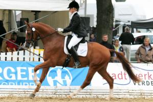 Unser Zuchtprodukt Lorenzio von Nymphenburg setzte sich beim internationalen Reitturnier in Verden hervorragend in Szene. Beim Reitpferdechampionat der dreijährigen Stuten und Wallache belegte er den hervorragenden 5. Platz und steht nunmehr auf der Reserveliste für das Bundeschampionat in Warendorf!