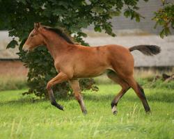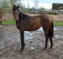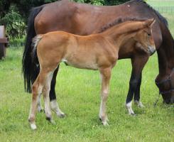 Jährlingsstute von Clarimo-Mytens xx-Lantaan, Holsteiner Stamm 3558. Wir freuen uns, dass wir die junge Dame erwerben konnten und sie leistet unserer Pleasure von Plot Blue jetzt zukünftig Gesellschaft.