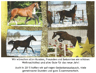 Allen Freunden, Bekannten und Reit-und Zuchtbegeisterten wünschen wir ein frohes neues Jahr und viel Glück und Erfolg im Stall!