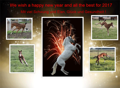Wir wünschen allen Freunden, Bekannten, Pferdebegeisterten und Kunden einen guten Rutsch und viel Glück,Gesundheit und Erfolg im neuen Jahr!