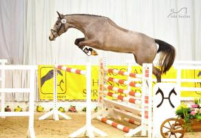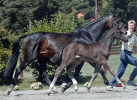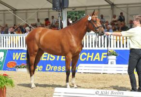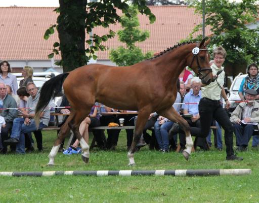 Bei uns geboren am 16.05.2009, nachdem wir die Mutter zusammen mit Ferdi Hodel aus der Schweiz tragend gekauft hatten.Inzwischen ist der in der Schweiz gekörte Hengst erfolgreich in Springen der Klasse M*, wo er in 2015 zweimal den 3. Platz belegte.