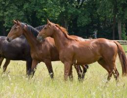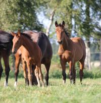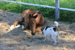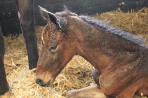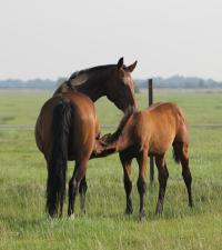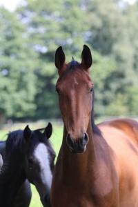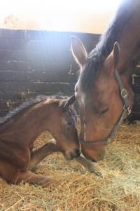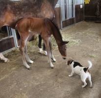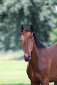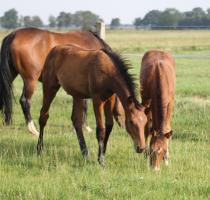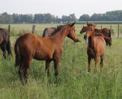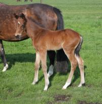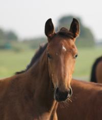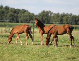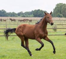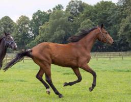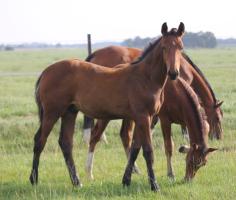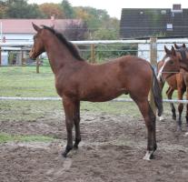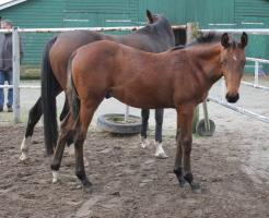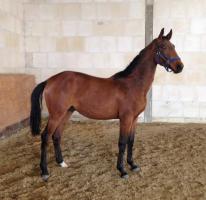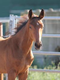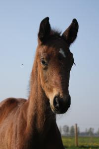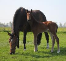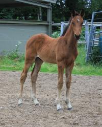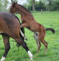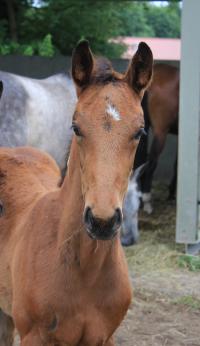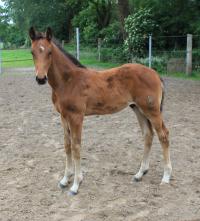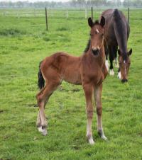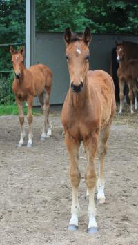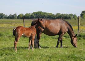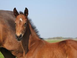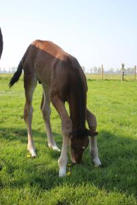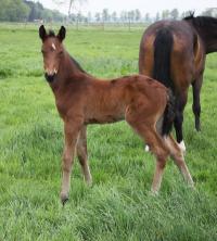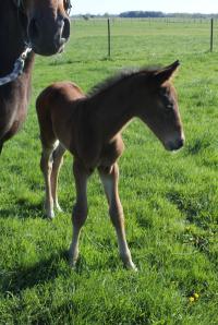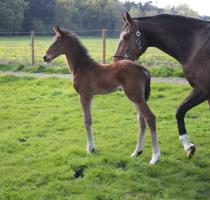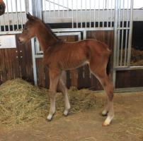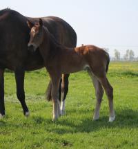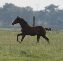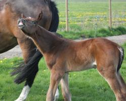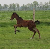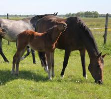 Die 4-jährige Stute Lady Calmia hat gleich mit ihrem erstes Fohlen einen Hengstanwärter hervorgebracht. Der junge Mann ist sehr groß, dabei blütig und unheimlich bewegungsstark.