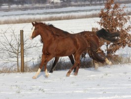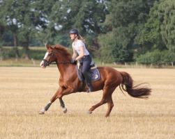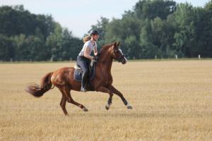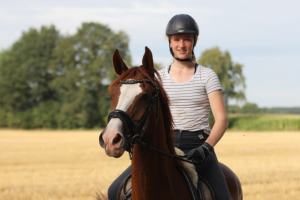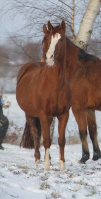 Calinca ist das 4. Fohlen unserer Stammstute St.Pr. Stute Farina. Sie selbst war unter einer Juniorin erfolgreich in Springprüfungen von Klasse A-M* mit über 100 Platzierungen.