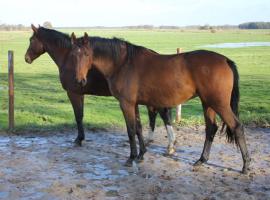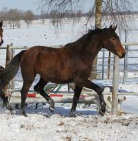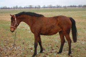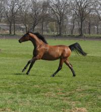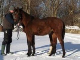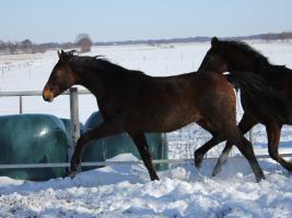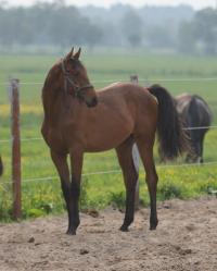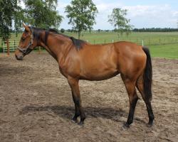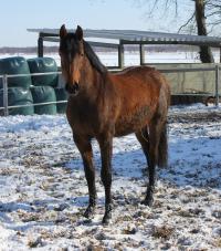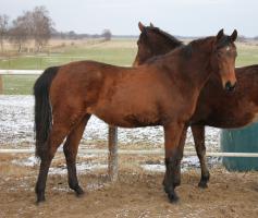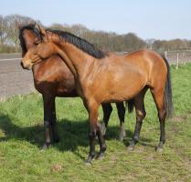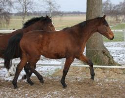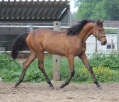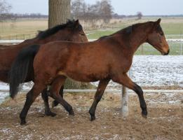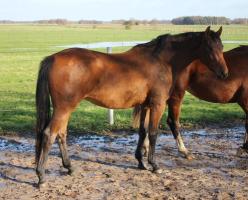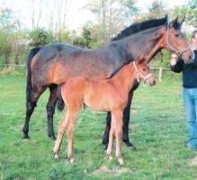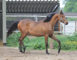 Eine interessante Nachwuchsstute mit ganz hohem Vollblutanteil. Der Vater Clarimo war letztes Jahr 8-jährig bereits mit Janne-Frederike Meyer bis S** erfolgreich. Er stammt ab von Clearway aus der Mutter von Cassini I und II. Der Mutterstamm 3558 ist der Stamm der Hengste Candillo, Gran Corrado, Flemingh und vieler sporterfolgreicher Nachkommen. Die Mutter Pusteblume hat die Bezirksprämie. Wir sind gespannt auf die weitere Entwicklung.