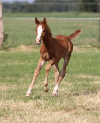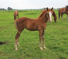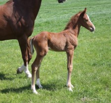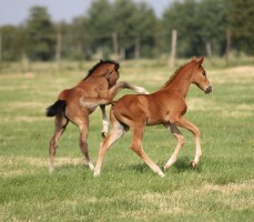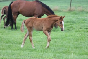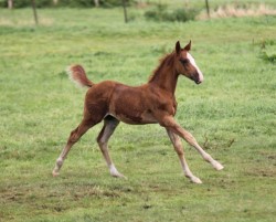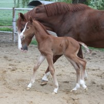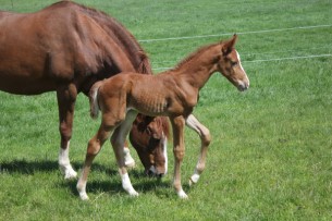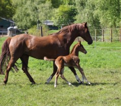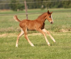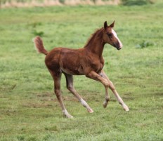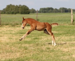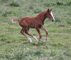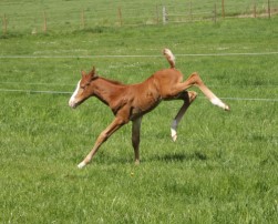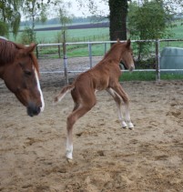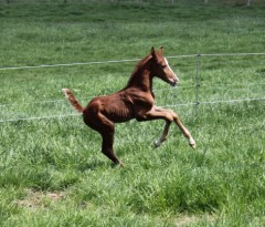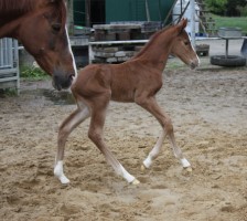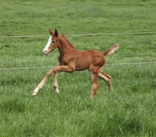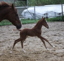 Das erste Fohlen der 19 jährigen Calnica, die selbst mit einer jugendlichen Amateurin international bis 1,30 m platziert war. Modern, edel, mit tollen Partien und einer super Galoppade ausgestattet lässt er für mehr hoffen!