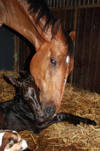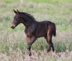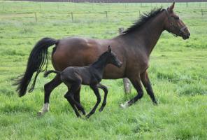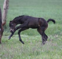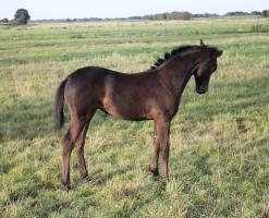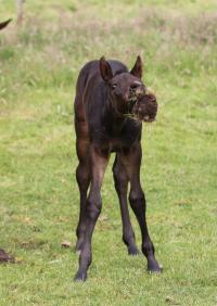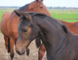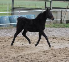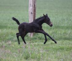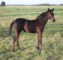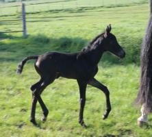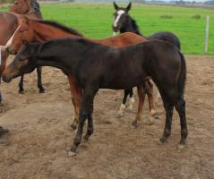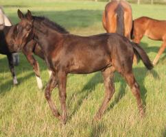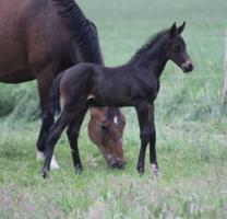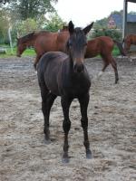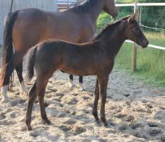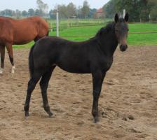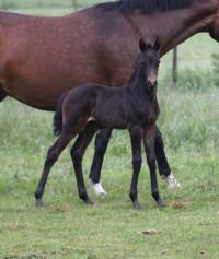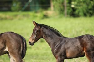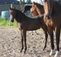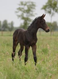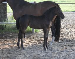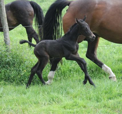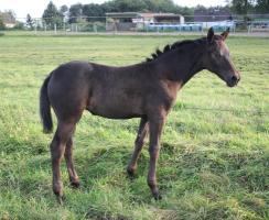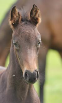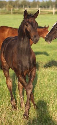 Das dritte Stutfohlen in Folge von unserer Lady Calmia. Ein bildschönes Fohlen mit ganz viel Ausdruck, dieses Mal von dem selbst im Sport auf internationalem Niveau mit einer Amateurin erfolgreichen Galayo la Silla, der aufgrund seiner Abstammung heutzutage eine echte Rarität ist, da er ein direkter Sohn des legendären Grannus ist und auf der Mutterseite den Gotthard Sohn Genever direkt im Pedigree führt.