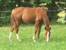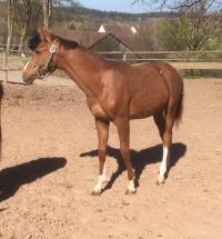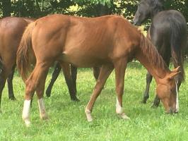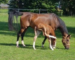 Das vierte Stutfohlen in Folge von unserer ehemaligen Zuchtstute Lady Calmia, die wir tragend nach Baden-Württemberg verkauft haben.Ein blütiges ganz langbeiniges Fohlen mit ganz viel Ausdruck, dieses Mal von dem selbst im Sport auf internationalem Niveau erfolgreichen Maloubet de Pleville, der bereits eine hervorragende Blianz als Vererber abliefern kann mit vielen Nachkommen, die bis 1,60 m erfolgreich sind. Bekanntestes Beispiel hierfür ist Malou/Meridith Michaels Beerbaum.