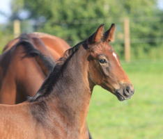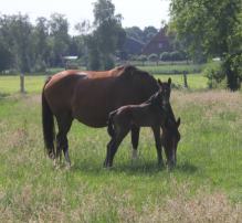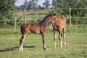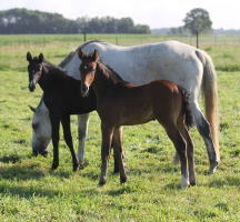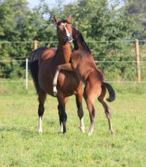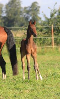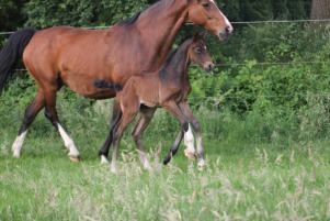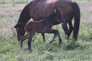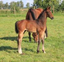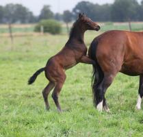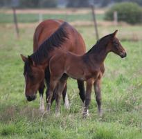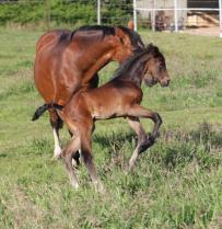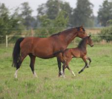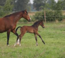 Ihr Halbschwester Pleasure ist inzwischen M** platziert und war bereits Fehlerfrei in 1,40 m Springen unterwegs, nachdem sie 2 Fohlen zur Welt gebracht hat.