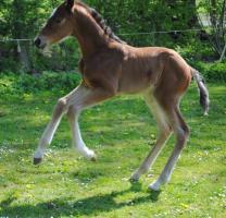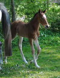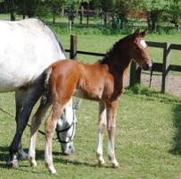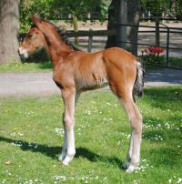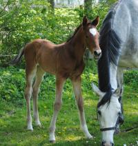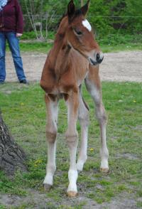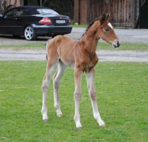 Das erste Fohlen derSt.Pr. Stute Carlotta, die in 2011 so eine überragende Stutenleistungsprüfung abgelegt hat, wobei sie für ihr grenzenloses Vermögen die 10 erhalten hat. Edel, sehr langbeinig und mit tollem Stern, genau wie wir es uns erhofft haben. Dabei aus bestem Leistungsstamm gezogen und von dem bereits international erfolgreichen Quidam de Revel Sohn Q-Verdi abstammend, so dass die Gene von den Jahrhundertvererbern Landgraf, Quidam de Revel, Calypso II, Cassini I und Cantus in seinen Adern fließen. Auf die weitere Entwicklung sind wir sehr gespannt!