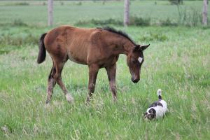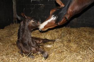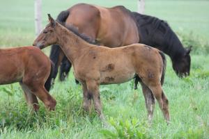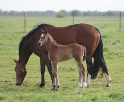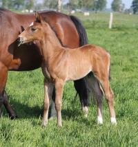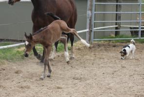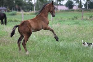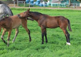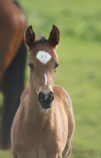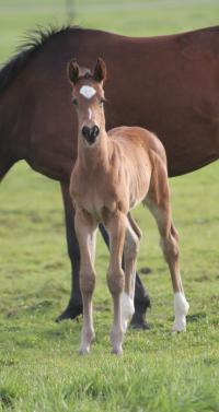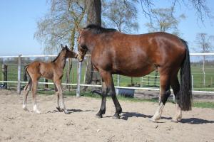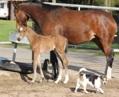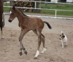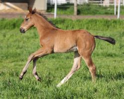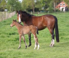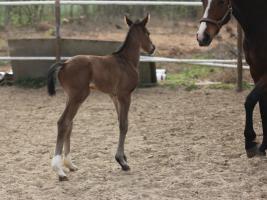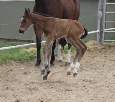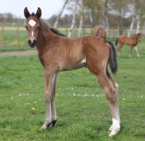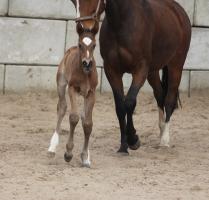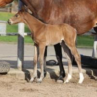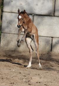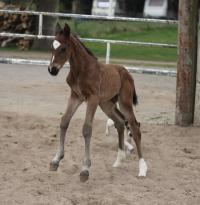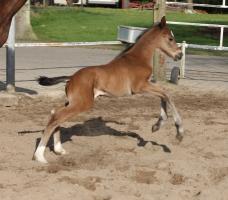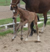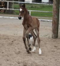 Hengstfohlen mit internationalem Leistungspedigree aus dem Stamm der St.Pr. Stute Farina, der bereits in der 4. Generation bei uns auf dem Hof beheimatet ist.