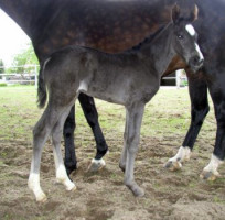 Diese Tochter in der begehrten Rappfarbe wurde über die Verdener Fohlenauktion im August 2006 für 10.000 Euro nach Spanien verkauft.