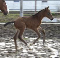 Big, correct, with nice neck and very brash, so the new born filly our of state premium mare Galoupee presented herself the first hours. We are very happy, that we get a filly from the winner of the world cup Sandro Boy out of a mother with the coveted Hannoverian G-blood on the mother side.