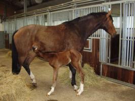 Our four year old state premium mare Grafina gets her first foal by Chacco-Blue ,who is in the meantime successful in international sport under Alois Pollmann-Schweckhorse. The Graf Top daughter Grafina got at her mare test a 9 for style and a 9,5 for fortune.