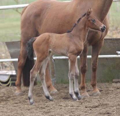 Every breeder, who use a thoroughbred, wishes to get a filly. The anlo arab Bonaparte AA was himself successful in international jumping classes and was several times placed in the German Derby in Hamburg. He know was retired this year at the age of 18 .